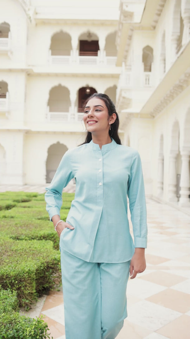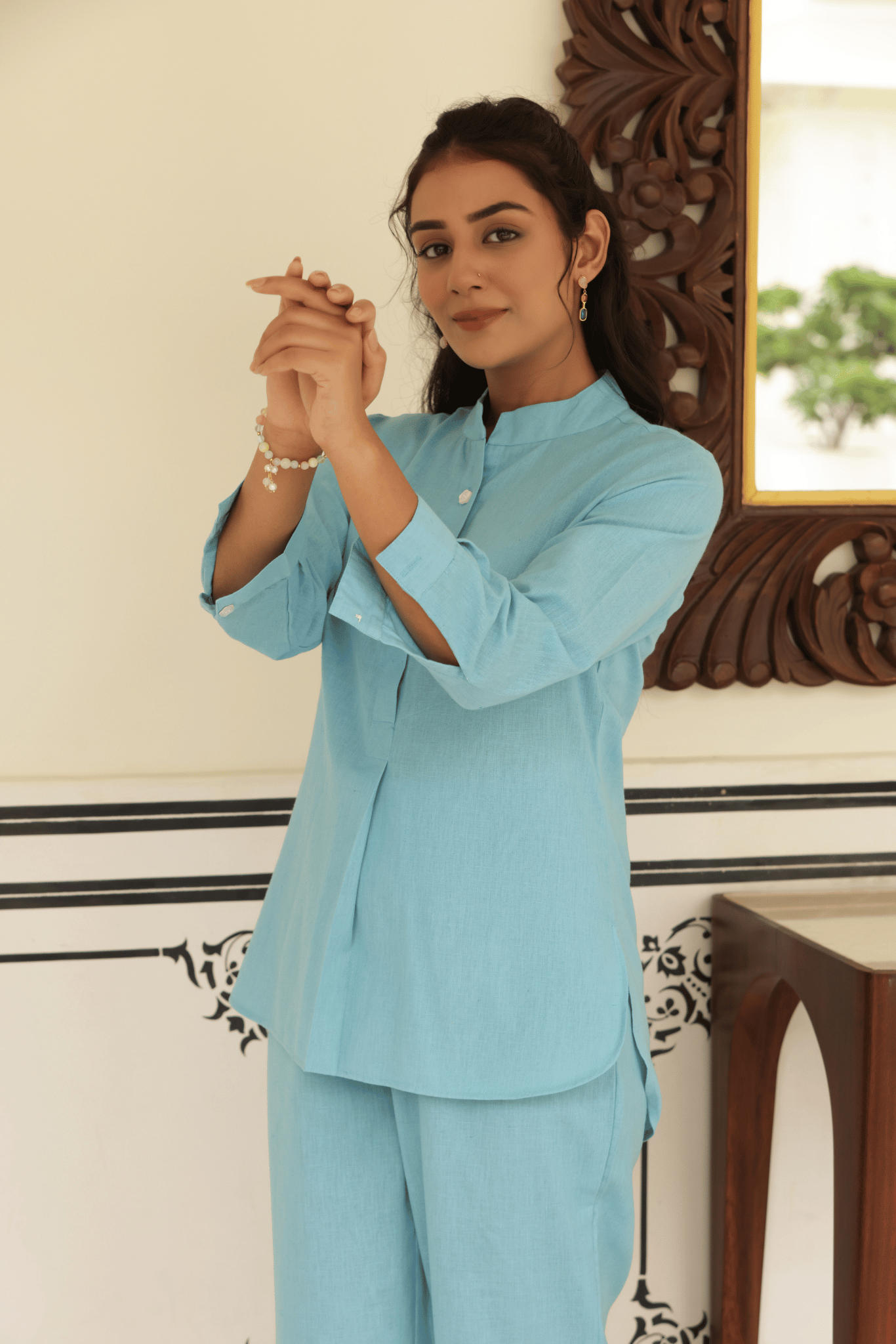 • Get ready to turn heads with our Blue Haven Cotton Co ord Set! Made with soft and breathable cotton, this matching set is both stylish and comfortable. Perfect for any occasion, this set will have you looking and feeling your best