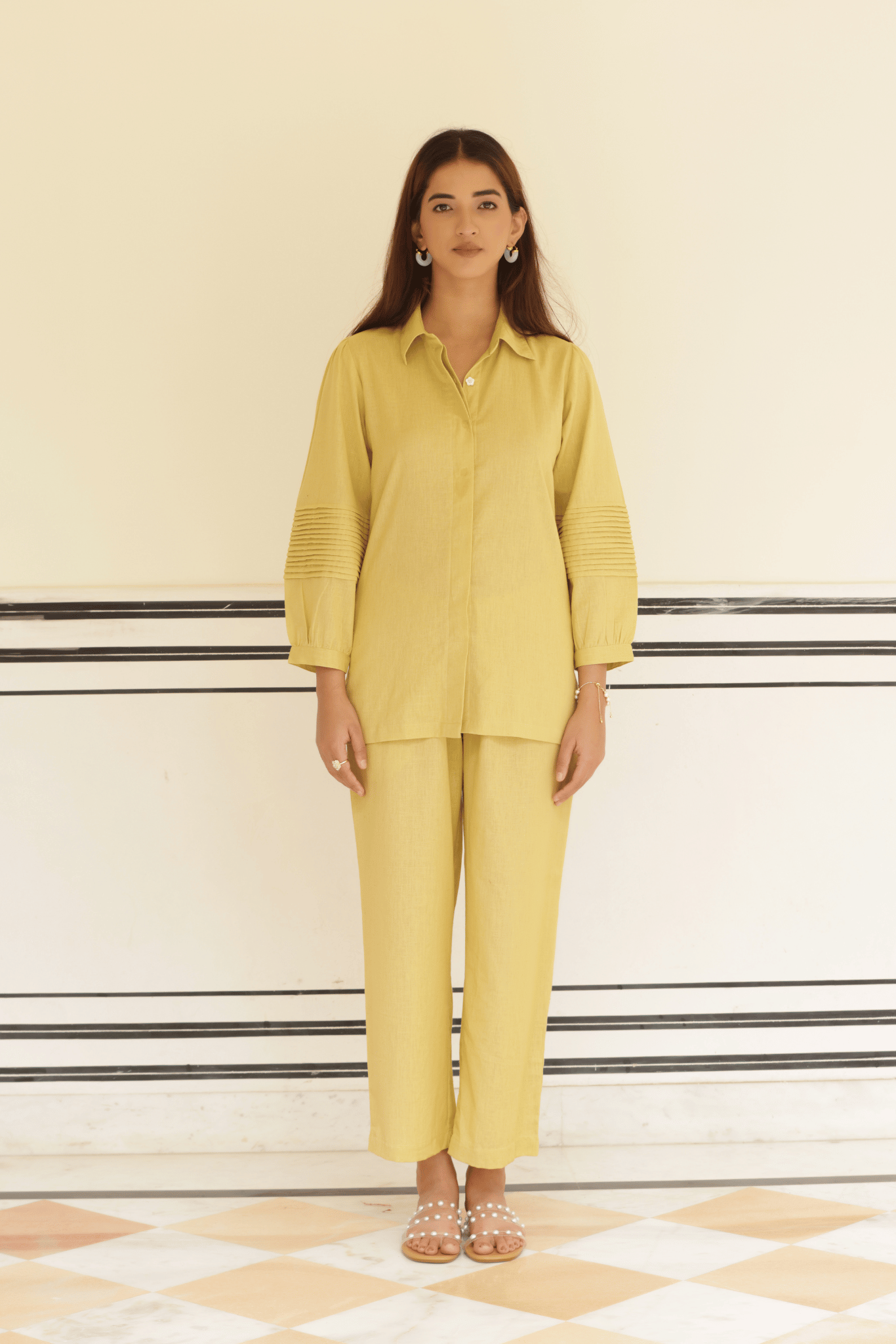 - Elevate your style with this cotton cord set, featuring elegant pintex detailing on the sleeves. Perfect for a chic, comfortable look that effortlessly transitions from day to night.
