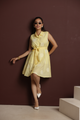 This sleeveless embroidered mini dress features a button-down front and a tie-up belt for a flattering fit. Fresh and playful, it’s perfect for sunny outings and casual chic looks.