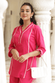 - This cotton cord set features delicate lace detailing, combining comfort with a touch of elegance. Perfect for lounging or casual outings, it adds a stylish flair to your wardrobe.
