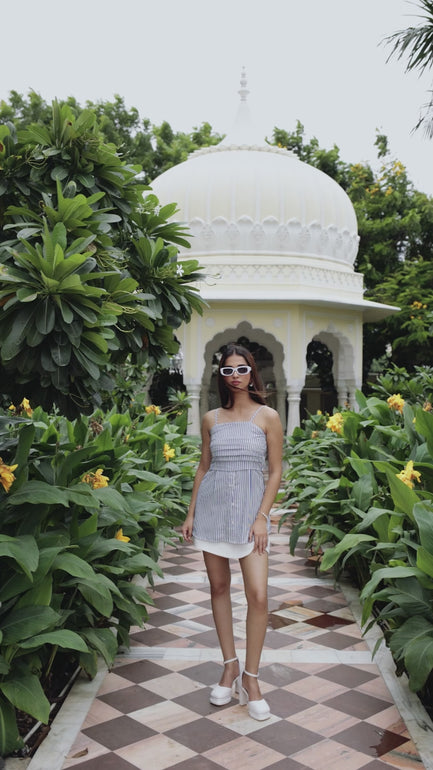 The IRIS STRIPES top features a chic, gathered design with bold, vertical stripes that add a touch of sophistication. Its flattering fit and lightweight fabric make it a versatile choice for both casual and dressy occasions.